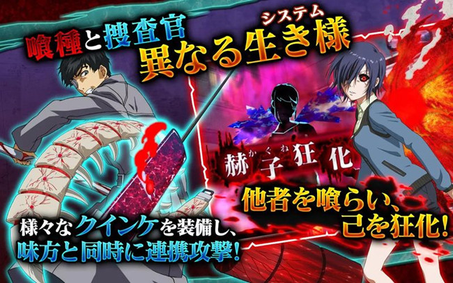 东京吃货手游化了,游戏采用3D画面,用3D战斗的形式来表现作品中那危机四伏的场景和环境金木研与亚门钢太郎将是不同阵营的主角人物