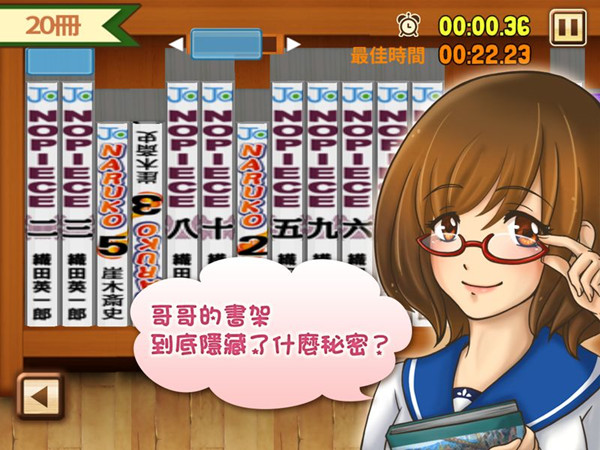 《哥哥的秘密书柜》是一款休闲益智类的游戏,在游戏里玩家将会扮演一位很萌的妹妹,帮助喜欢在书柜前鬼鬼祟祟还总把书柜弄得一团糟的哥哥整理书柜,游戏中把书柜整理完毕后会发现一些不得了的东西哦。