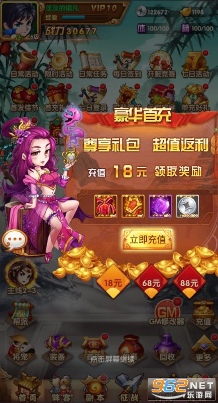 ★创角即送VIP10、千元充值卡、百万元宝、千万银两,升级可领万元充值和千万元宝,免费畅享GM矿机特权,挖矿领矿币,兑换超值好礼!