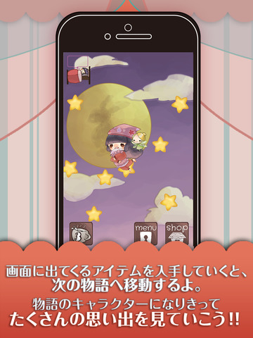 有一天,主角看着书睡着了,就这样进入了童话世界。游戏中的世界大多都是大家耳熟能详的童话,比如《彼得番》《灰姑娘》等等。玩家通过升级来进入不同的舞台以及收集图鉴。游戏中的热牛奶还能大量增加经验哦!