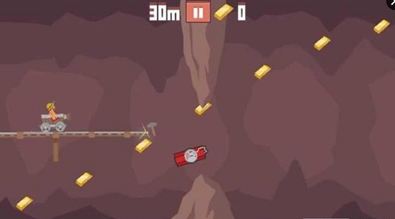 生存矿车游戏背景设置在一个地下矿道中,手推车带着矿工不断向前移动,玩家需要建立起一条安全的轨道供小车前行,一路上还要收集金矿,躲避炸弹和岩石。