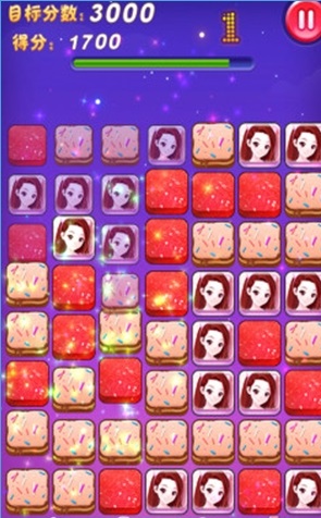 4、点击相邻的相同的人物,就可以进行消除啦,时间有限制,必要的时候,可以选择道具来使用;