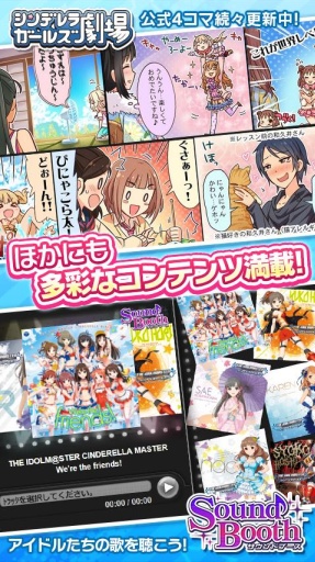 偶像大师:灰姑娘女孩同名养成手游发布了!游戏忠于动画原作,玩家可以收集养成13位美少女,将她们培养出成偶像团体!游戏将卡牌战斗与养成玩法结合在一起,丰富的玩法设定与新奇的原创内容让玩家惊喜不断。