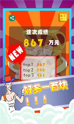 100块都不给我是一款趣味小游戏,还记得去年遍红网络的一百块吗,怎么能一百块都不给我呢,现在想要多少天上就掉多少,看你手快不快咯,只需手指一点钞票就掉落你需要接住哦!