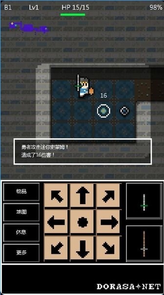 2、勇者之地牢是一个探索地下城的游戏,有几个虚拟按钮。地下城的地图是自动生成,每次都不同。每一次进入游戏都会随机生成一个地图,每次玩都能体会到不同的乐趣!