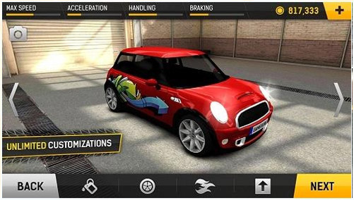 解锁新车或用金币改装。您可以购买新颜色、彩绘、轮辋,甚至升级车辆。
