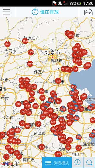 谁在排放快速了解身边的污染源。首次汇总多省市废气污染源实时排放数据,地图标注超标排放废气企业