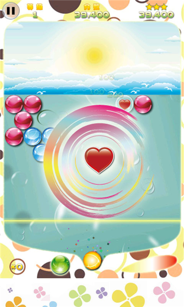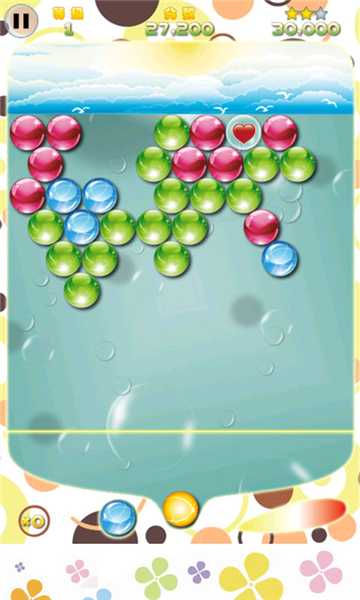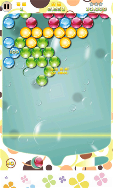 1、背景画面清新亮丽,泡泡轻盈透亮,动感十足,带领玩家进入一个轻盈梦幻的泡泡世界;