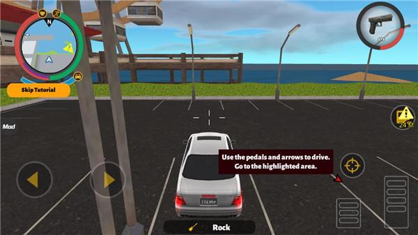4、点击按钮上车,点击踏板来驱动汽车前往下一区域即可