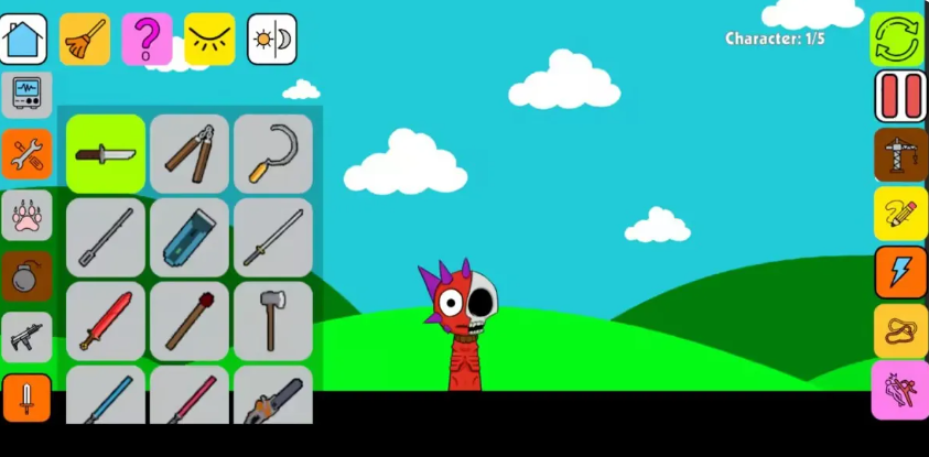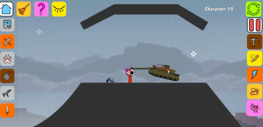 拥有大量武器、工具和互动对象,您可以设计精心设计的设置来折磨您的布娃娃。从巨型锤子和旋转刀片到爆炸桶和反重力陷阱,可能性是无限的。构建复杂的连锁反应,测试物理极限,或者只是享受观看Sprunki互相攻击的纯粹欢闹。