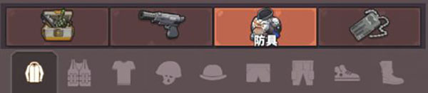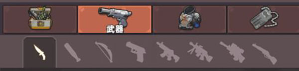 2、武器:按照图片顺序,分别为:利刃,钝器,弓弩,轻武器,步枪,重武器,狙击枪,散弹枪。