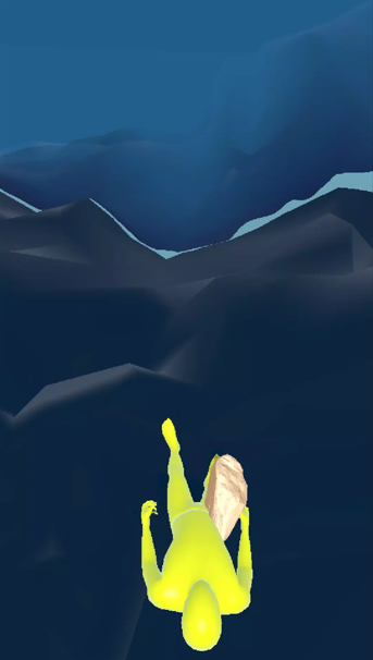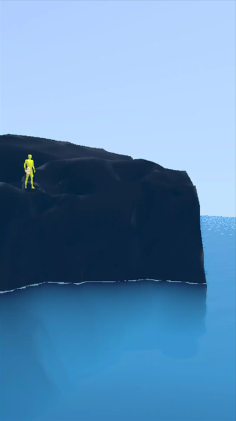 滑动屏幕将石头扔到水面上。让玩家从悬崖上跳下,朝着石头落地的位置前进。如果玩家落在石头落地的同一位置,则通关。
