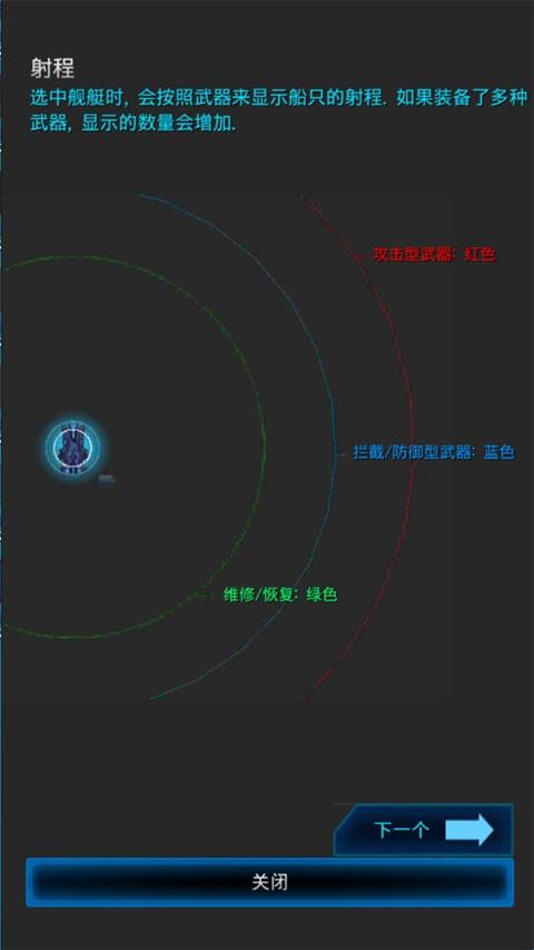 选中舰艇时,会按照武器来显示船只的射程。如果装备了多种武器,显示的数量会增加。