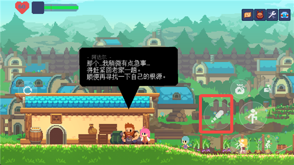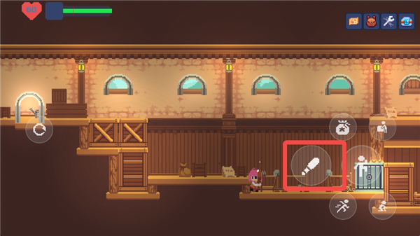 1、游戏的主交互键位于右侧按键的最上方,和NPC以及场景的交互都是依靠这个按键完成。在这个形态下,按下互动键和方向键则可以拖动一些场景内的箱子,从而跳到更高的地方。