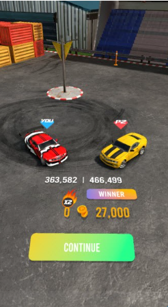 2、在单人模式中,你需要操控赛车不断漂移来躲避障碍物,得到高分,才能赢取奖励。