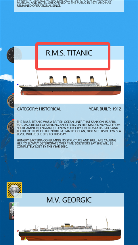 3、进入船只界面,这里有多艘船只供选择,例如我们可以下滑选择这艘泰坦尼克号。