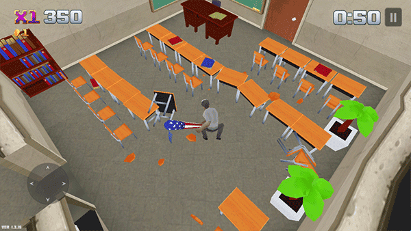 学校中的设施种类丰富,当然价格也不一样了;玩家们应该选择价格贵的进行破坏,就能得到较高的分数,像一些课桌椅多的就破坏一番,少的地方就可以放弃了。