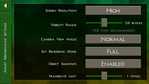 2、“settings”中的“performance”中,我们还可对游戏中的画质进行自定义设置,对于设备配置较低的玩家,可适当的降低画质,来提高游戏的流畅性