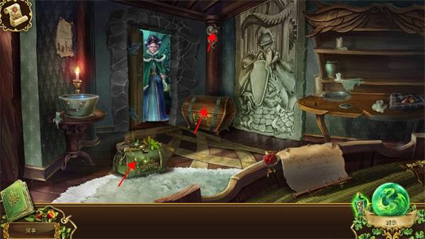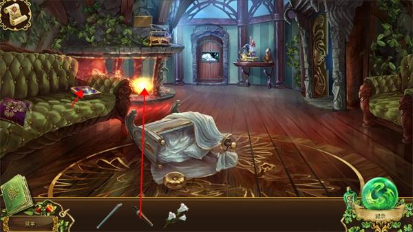 1、开始会有一段动画,看完我们可以得知故事剧情,皇后无法说话,但是不知道是得了什么病,需要检查,接着我们来到了客房,在房间里,首先我们可以在地上拿到一个草药行李箱,角落的柱子上我们可以得到一个医师符咒,整个游戏总共有31个医师符咒,算是隐藏物品吧,不点也没什么影响的。