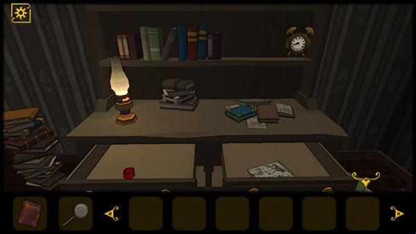 2、打开抽屉获得红色机关石头和查看报纸,注意钟表上红色指针指向的数字VIII。