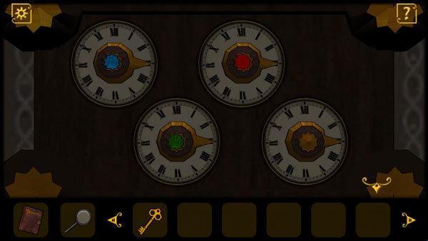 3、查看墙上的钟表谜题,需要集齐四个对应颜色的钟表才能解开。