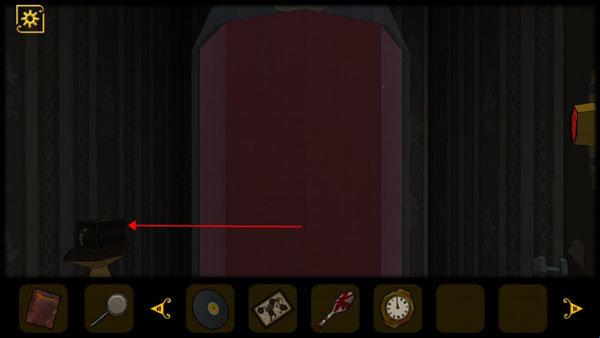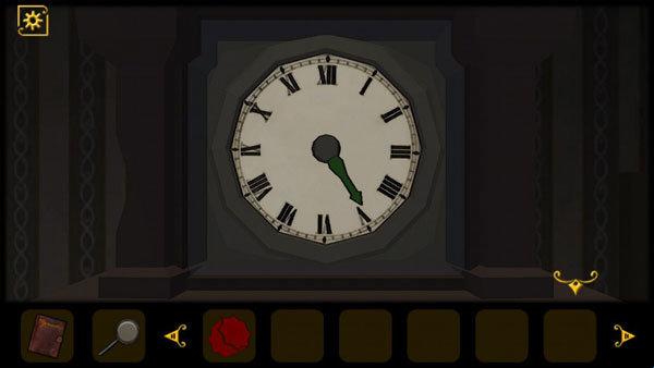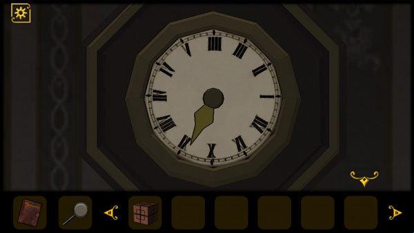 4、在留声机的背后获得房门钥匙,打开房门去往下一个房间,入眼即可看到一个钟表,绿色指针指向V。
