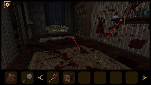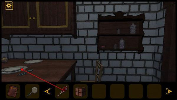 7、进入厨房,从桌子上获得勺子,然后进入带血的房间中。