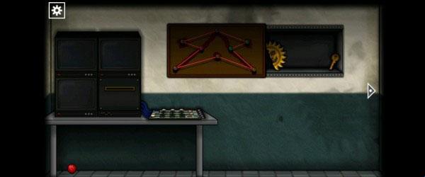 24、来到停尸房,打开苍蝇罐观察苍蝇的位置,然后到外面打开柜子获得「磁铁」。接着坐电梯到一层,将磁铁安在桌子的凹槽里,玩过游戏后获得「金属球」。