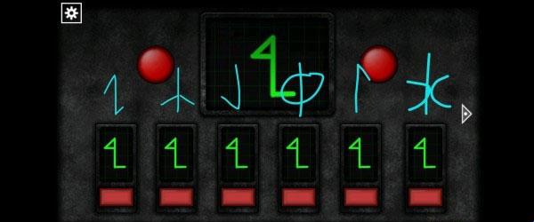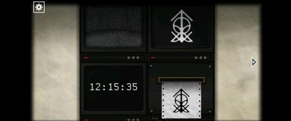 21、观察白色纸条上的符号,然后点击下面的按钮使最终的符号出现,完成后打开铁门。