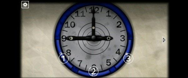 13、回到二层进入医务室,点击墙上的时钟将指针拨到12:15:35,完成后获得另外半块「奖章」和「金属盘」。