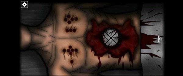 16、出了停尸房来到右边的房间,先拿走桌子上「锤子」,然后用钥匙打开门并进入。观察尸体胸口上的伤痕获得密码「1635」,接着用解剖刀割开肚子上的线获得「金属盘」。