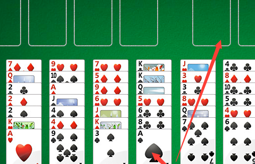 2、至可用单元:每次仅能将一张牌移入 “可用单元”,这里就如同一个临时中转站,帮助玩家灵活调配纸牌位置 。