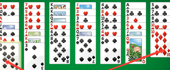 1、列内移动:每一列仅能移动最底部那张牌,且移动到其他列时,需遵循红黑花色交替、降序排列的规则。例如,红桃 5下方若要放置纸牌,只能是黑色且点数大于 5的牌,像黑桃 6等 。