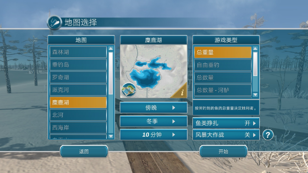 1、玩家可自由选择不同湖泊或水域进行垂钓,通过钻冰、放线、收杆等流程展开操作。