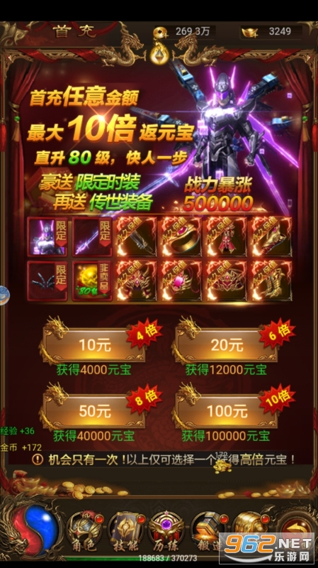 ★击杀BOSS随机掉落元宝券,每日红包登录领元宝