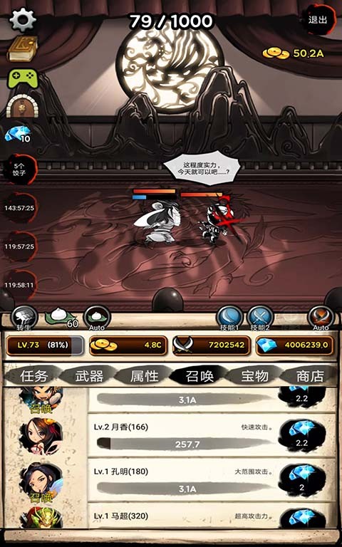 3、使用钻石可以升级角色的各种属性,提高战斗力。