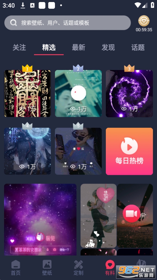 用户可以在此发现海量的壁纸资源,这里有着动态壁纸和静态壁纸;