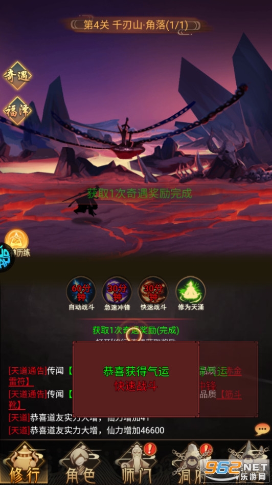 离线战斗,超高收益,每次上线都有新的提升!更有随机任务、奇遇气运,修仙路上轻松愉快!