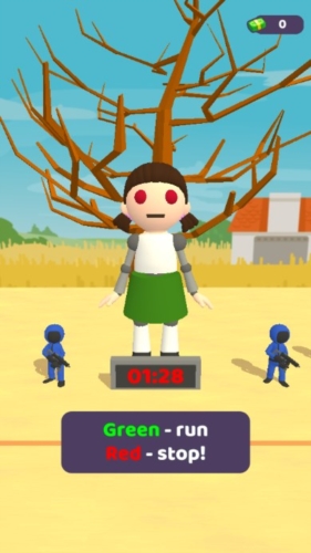 鱿鱼游戏:生死挑战是一款高度还原热门影视IP的沉浸式休闲益智手游,将《鱿鱼游戏》中最具标志性的一二三木头人”桥段完美搬上移动端。玩家将在紧张刺激的倒计时中,与诡异的红衣女娃娃展开生死博弈——当她背对时,迅速冲刺;当她猛然180度转头,必须瞬间静止!任何微小的移动都可能触发红色警戒,被无情淘汰。唯有冷静、反应与胆识兼备者,才能穿越死亡视线,抵达终点,赢得胜利。