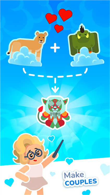 物种杂交模拟器正式版是一款由CASUAL AZUR GAMES精心打造的创意休闲益智手游,颠覆传统配对逻辑,将爱”与生物融合”巧妙结合。在游戏中,你将扮演一位不拘一格的丘比特——不在乎物种界限,只求促成真爱”以完成业绩。只需轻点拖拽,发射爱之箭,让不同性别的生物相遇相恋,即可诞生融合双亲特征的全新生命体。同性组合则不会触发杂交,机制简单却充满趣味。游戏全程支持离线单机运行,无体力限制、无失败惩罚、无时间压力,为你提供一个纯粹、自由、治愈的创造空间。每一次配对都可能带来意想不到的稀有或隐藏形态,激发无限探索欲。