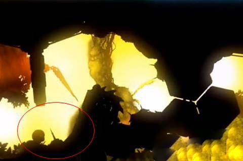 这个地方是难点,玩家吃完上面的克隆之后需要向左边移动,保证有一个克隆可以吃到下方的能量体,从而缩小,让上方的克隆体穿过小的隧道,红色箭头部位的机关需要玩家触碰。
