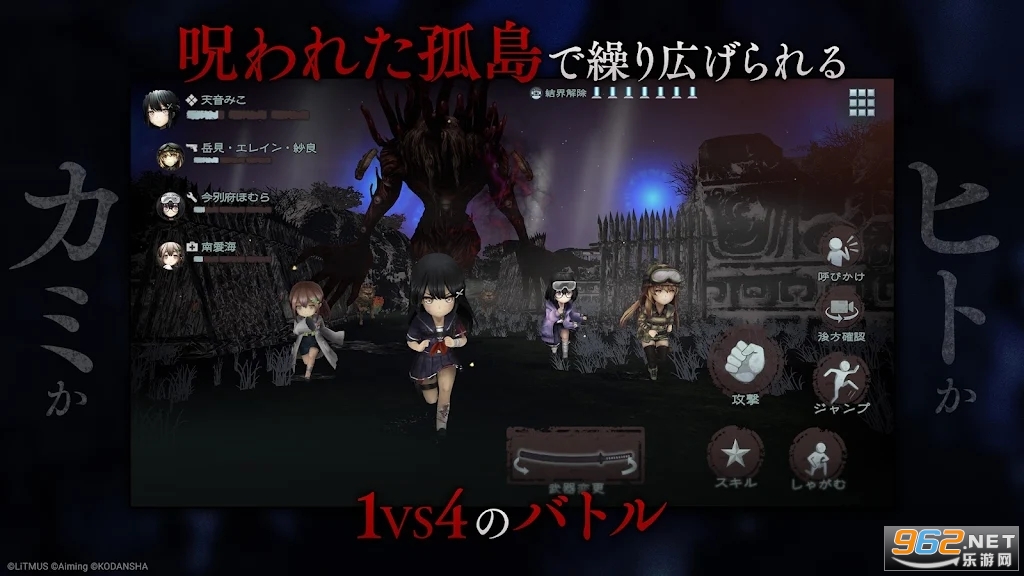 一款在线恐怖动作游戏,背景设定在一个被特殊屏障封闭的岛屿上。这个岛屿被一个叫做Hiruko的“神”统治,而玩家将扮演“人类”,需要躲避神的干扰并与伙伴合作解除结界以逃离岛屿。游戏支持1名神和4名人类的非对称玩法,人类具有特殊能力和使用物品的能力,而神则可以附身岛上的动物,并具有强大的力量和攻击能力。玩家可以探索岛屿、寻找武器和恢复物品,并解除多个“结界装置”以逃离被诅咒的岛屿。此外,游戏还提供剧情模式,揭示被诅咒的孤岛的秘密。