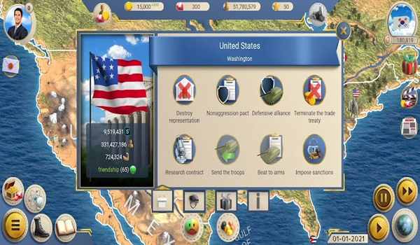 现代时代2高级版无限钻石版是一款以政治、经济、军事为一体的策略模拟类手游,在游戏中,玩家们可以去扮演一位国家的总统,所以玩家们需要想尽办法去治理自己的国家,提升国家的经济实力,同时你还可以招兵买马去和那些敌对的国家进行战斗,以此来开拓地盘。同时小编这里提供的版本是修改版本,可以为你提供无限的金币,所以感兴趣的玩家,快来试试吧!