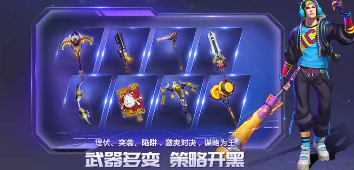 《战塔英雄》创新采用了非线性对抗的游戏设计,摒弃了固定的英雄和枯燥的对线发育,带来了更多战术选择和更丰富的发育方式。杀人、打野、钻房子,只要你能苟住,胜利不再有固定公式。游戏的武器系统新颖独特,将MOBA中的战斗技能,调整为可以随时替换的武器。在一局游戏中,玩家可以通过调整手中的武器改变自己在团队中的定位。当团队输出乏力时,你可以选择龙炎火铳、射日神弓等强力DPS武器疯狂杀敌,力挽狂澜,当团队冲击力不足,缺少肉盾时,你可以将武器更换为洪荒狼牙或者幽海铁锚充当开路先锋,吸收敌方伤害。这样的玩法可以让你不断优化团队配置,提升获胜几率。