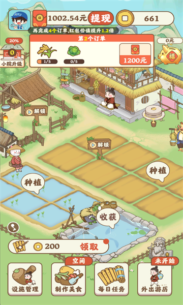 积累财富:通过不断完成订单和收获农产品,积累财富,发展壮大农场。