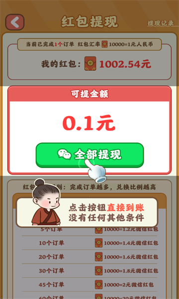 4、当玩家完成订单之后就能获得对应的红包奖励了。