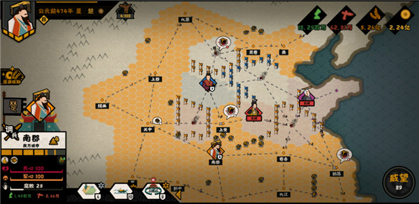 当然,中在兵力的数量得到一定的提升之后,也不要忘了给他们的配置进行革新,破了两个城之后就会有青铜了,把青铜用来研究铜甲和武器,能进一步提升兵力的战斗力噢。如果还有资源剩余,推荐选择研究政治和民生