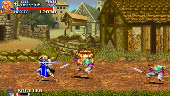 圆桌骑士是一款充满挑战与乐趣的冒险闯关游戏。你是否还记得小时候在街机厅里玩过的经典动作游戏——圆桌骑士?它又被称为刀剑斧游戏。玩家可以从三位角色中选择其一:使用长刀的Lancelot、挥舞宝剑的Arthur以及手握战斧的Percivale。在游戏中,你将置身于古老的罗马帝国背景之中,操控着英勇的骑士们一路披荆斩棘,最终赢得胜利。
