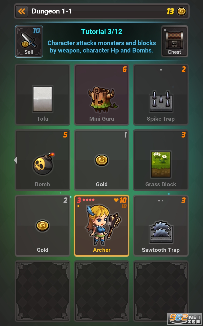 使用武器、角色的生命值和炸弹攻击怪物和方块,并通过收集黄金来收集积分,同时使用药水恢复角色的健康状况。您可以通过增加积分数来获取新的地牢和角色,同时利用魔方的力量获得技能卡。您还可以使用地牢中的金子解锁角色的能力和新技能卡。
