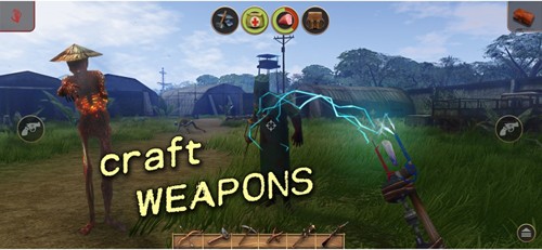 中级阶段(冷兵器时代):当你摆脱饥饿威胁,便可深入岛屿腹地探索。此时可采集高级矿石、狩猎更强生物,甚至挑战丛林中的僵尸据点。建议升级为铁制工具(铁斧、铁镐)和近战武器(铁刀、长矛),并开始制作基础防具以提升容错率。若靠近海岸,还可自制鱼竿钓鱼,但务必留意水下鳄鱼的袭击。